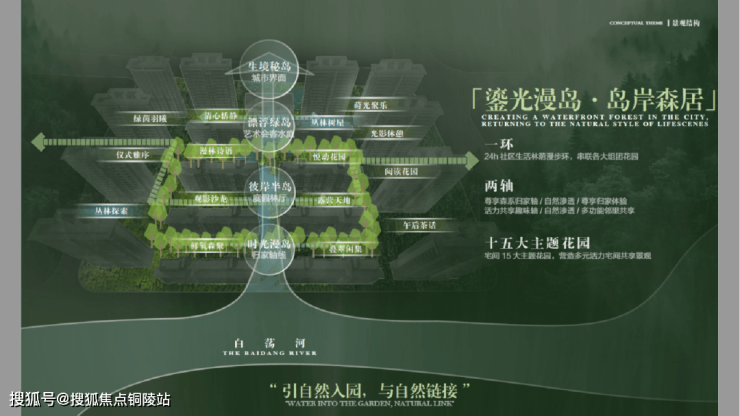整个社区内,项目规划“一环两轴十五园”景观布局,将水岸、岛屿、森林、花园、树屋作为园林节点,营造出沉浸式山水活力场域。