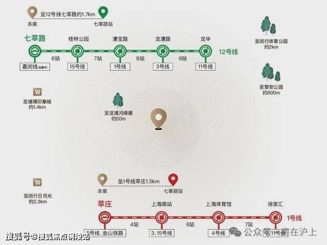 商业方面,离项目最近的商业是12号线七莘路站地铁上盖综合体维璟印象城,直线距离仅相距约1.4公里