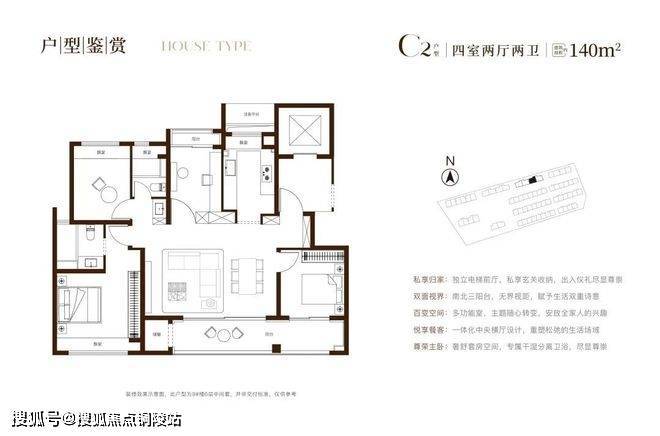 堪称改善家庭的理想之选。类一梯一户设计配备了私属电梯厅,提升了居家隐私与尊崇感。约14.4米的超宽四开间朝南,尺度可媲美大平层。