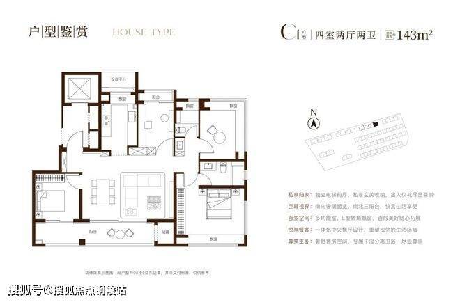 建筑面积约120㎡的户型实得率高达约86%,空间体验可媲美传统140㎡户型;建筑面积约143㎡户型实得率更达到约92%,能带来堪比160㎡大平层的奢阔感受。
