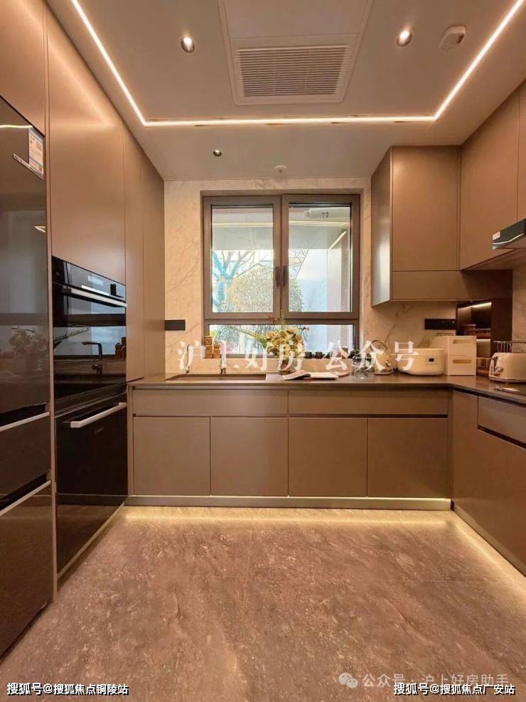 第二,功能满配厨房:项目的厨房部分巧妙的利用了飘窗台做水槽的设计,一方面这提升了厨房实际使用空间,能将6件套家电塞下,同时保证橱柜配置满足功能。另外一方面这也让视觉空间上显得更大,更阔绰。