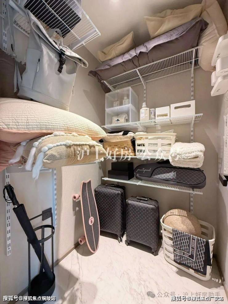 客厅左手边做了一个敞开式书房和一个南向客卧,其中南向客卧里带一个独立衣帽间。