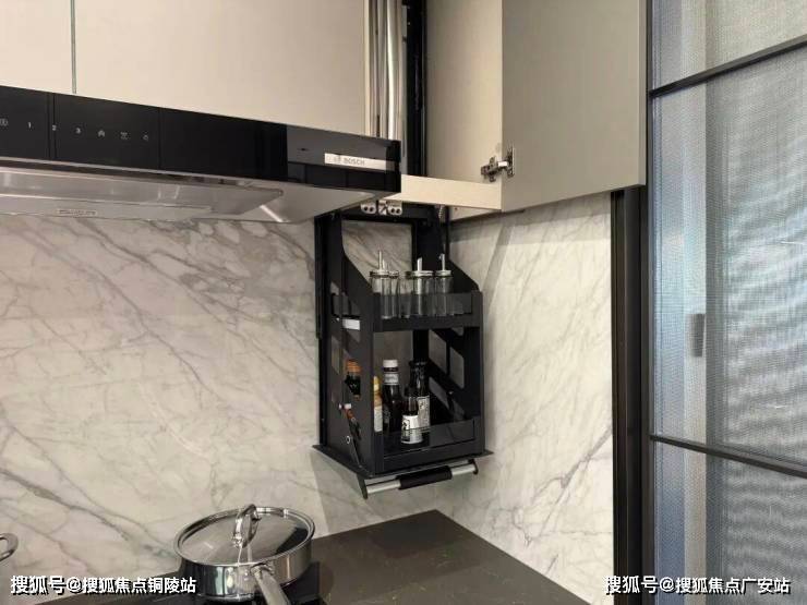 还有燃气灶旁的调味品拉篮,经常做饭的都知道,灶台旁的东西容易沾上油烟粘乎乎的,这个拉篮不占地方,也可以避免瓶瓶罐罐沾上油烟。