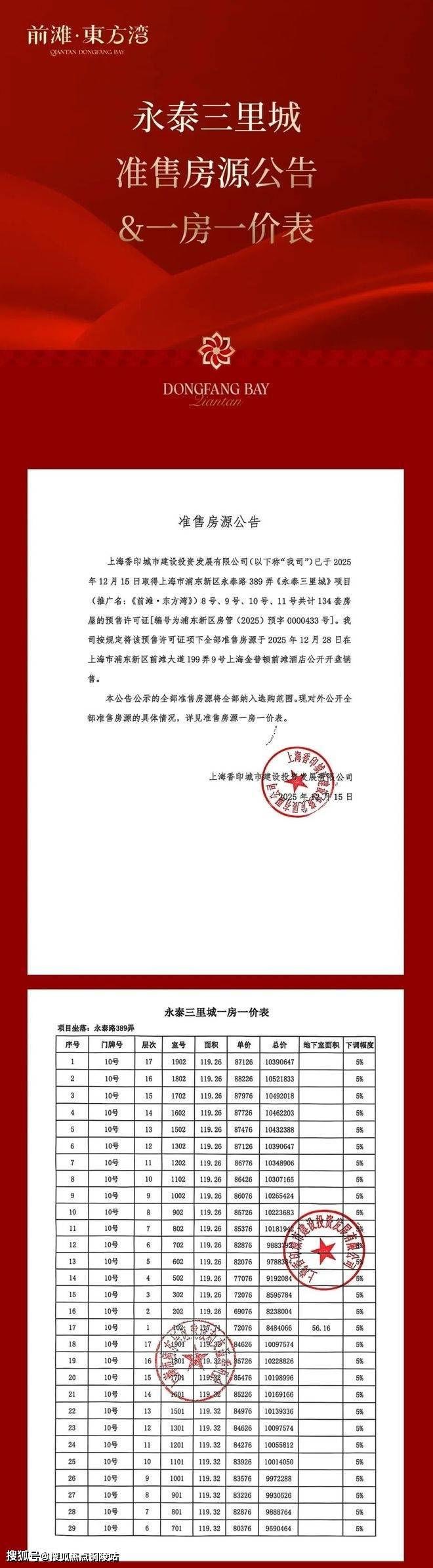 前滩·东方湾售楼处电话:400-9699-334✨【官方认证】✅✅✅位于上海浦东三林西部板块,紧邻前滩,直线距离约3公里。项目由原永泰三里城二期升级而来,备案均价约8.38万元/㎡,是浦东中环旁价格优势明显的住宅项目。项目容积率2.0,规划7栋17层住宅,共364套房源,主力户型为103-175m²3-4房,层高3.1-3.15米,部分户型实现类一梯一户和南北双阳台设计,空间利用率高。
