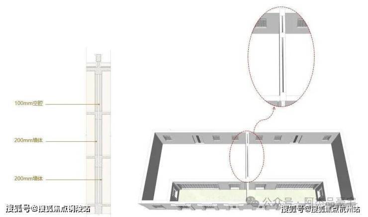 与其他风貌共用一堵分户墙不同的是,忻园的风貌别墅采用双层分户墙做法,每户之间没有共用墙。200mm厚度的墙体,中间还设置了100mm空腔,避免邻里的相互影响,带来舒适静谧的居住感受。