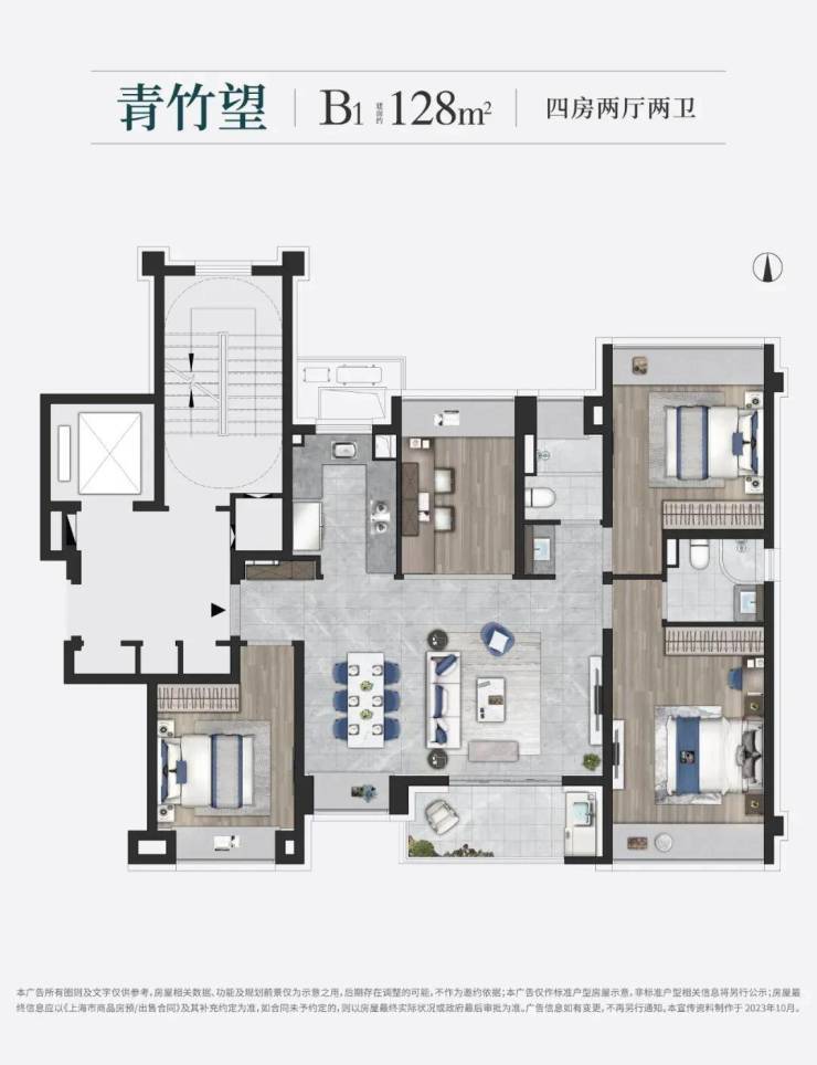 如果家庭有二孩或者三代同堂需要的,那建面约150㎡的四房大平层一定要优先加入您的“购物车”,标准的“大面宽短进深”的黄金户型格局,直接让人竖起大拇指:
