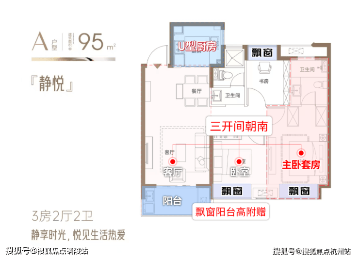 同样是设计水准一流的神户型,做到了三开间朝南+主卧套房+三飘窗+南向观景大阳台,空间利用率以及营造的舒适度都保持在较高水准。