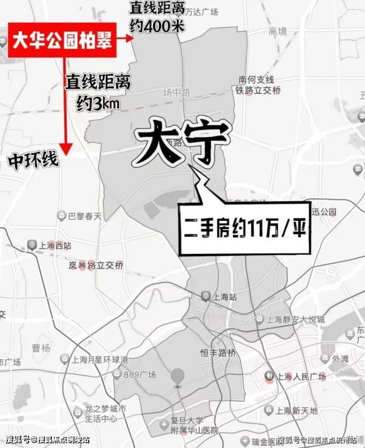 为什么说「大华·公园柏翠」的地理位置绝佳?因为它直线距离静安区只有400米,直线距离中环线只有3km,地理位置决定了享受到的资源浓度,大宁的繁华咫尺可得。