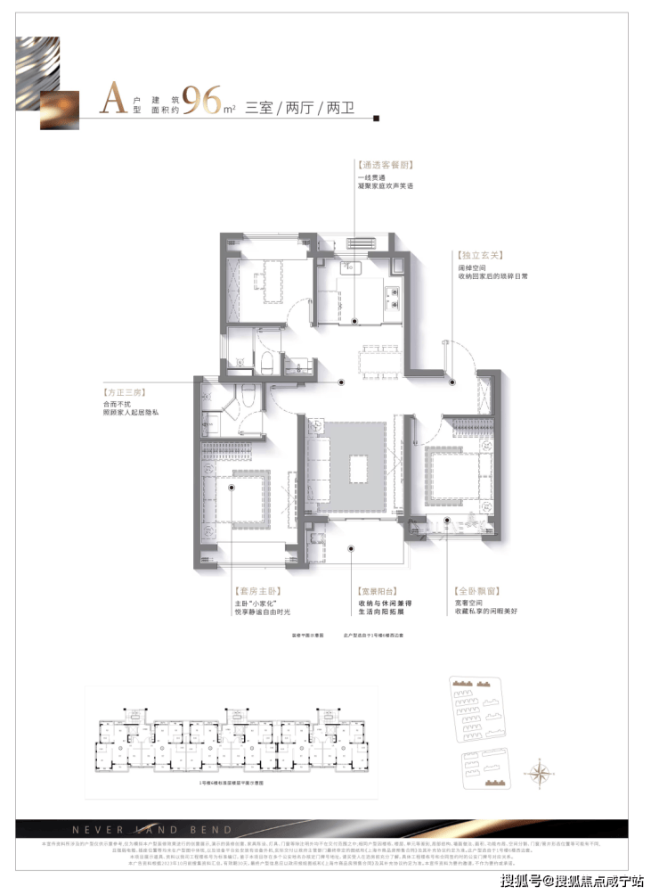 建面约:96㎡ 三房两厅两卫(高层)