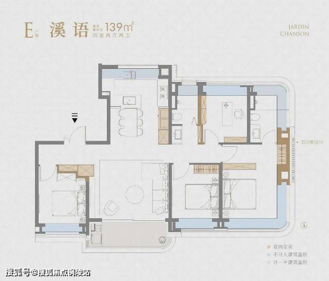 项目建面约139㎡4房则是集大成的终极改善户型。