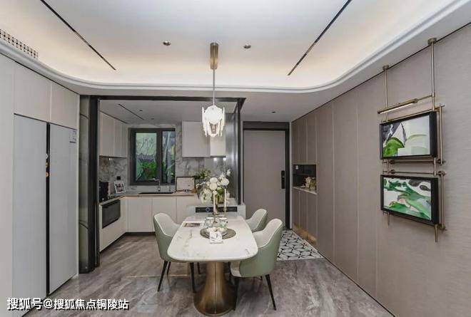 项目的厨房采用金属框+艺术玻璃移门,推拉丝滑颜值颇高!
