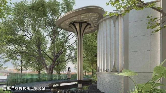 以雅艺柔美的对称主义构筑社区入口大门,从森林中获取灵感,宏观提取叶脉形态,呈现犹如自然中的脉络与流动;同时深入微观的细胞视角,复刻植物的几何纹理与结构逻辑,以自然的秩序与美学塑造“花瓣状的母题造型”。