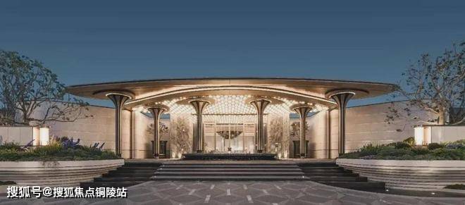 项目恢弘大气的门头,项目设计师以浮岛为灵感,将几根立柱化作悬浮的雕塑,撑起一片轻盈的仪式感。