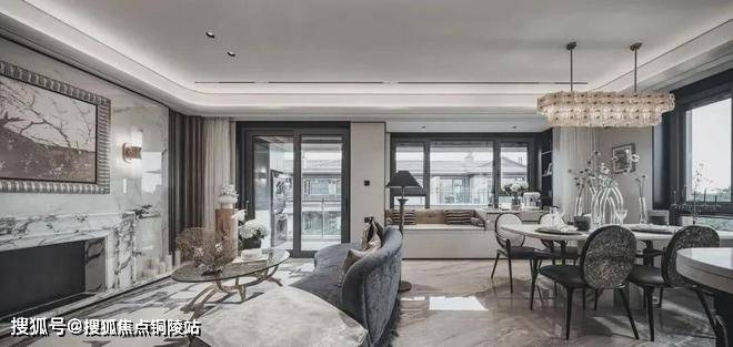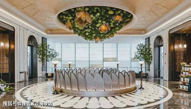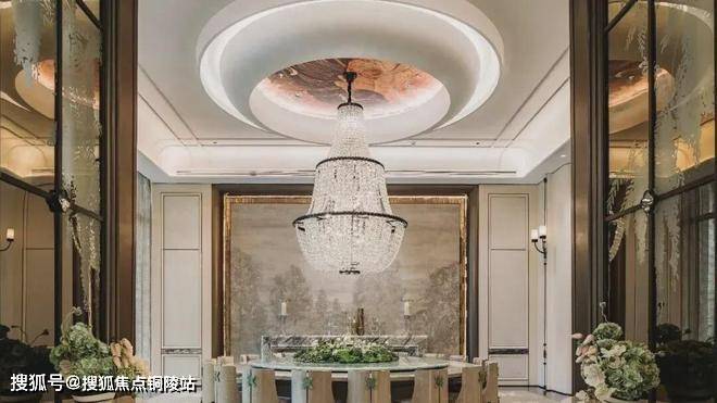 在景观落地窗环绕中,私宴厅以“花廊序列,美学对景”构筑专属的私谧空间,巨型水晶吊灯与浅色饰面的搭配,色彩质感上相得益彰,营造融合艺术、文化与生活美学的奢享感场域,成就令人神往的优雅社交范式。