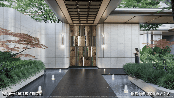 景观方面,定制的中央庭院景观轴,水景与植被相互映衬,双下沉式庭院增添错落氛围,风雨连廊+部分架空层和大区的景观做链接,让业主仿佛置身于自然的怀抱中,感受着诗意与宁静。