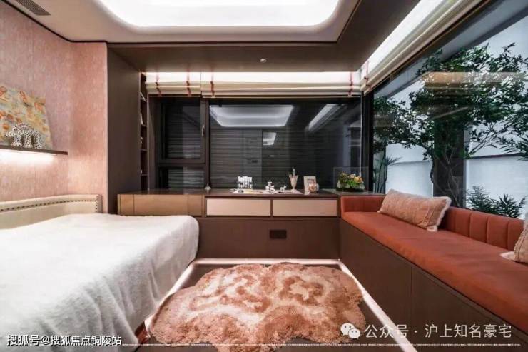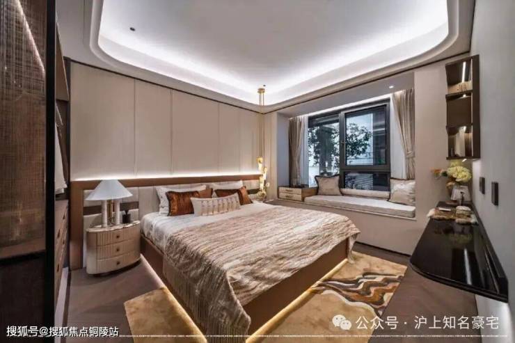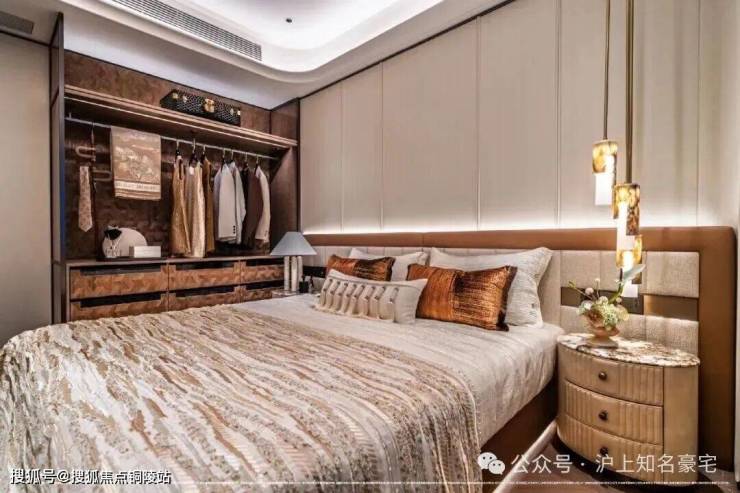 卧室则铺设海派鱼骨拼花地板,借木质肌理的温润与细腻,营造出私密领域的宁静氛围!这种“公区显质感、私域藏温度”的材质分区逻辑,恰是高端住宅设计中至关重要的一笔!
