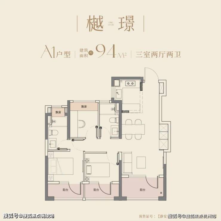 建面约94㎡户型,即做到了三阳台的配置,方正户型格局,大开间尺度,全室飘窗设计,可做多元改造,如储物空间或拓展室内面积,为生活打开更多想象空间。