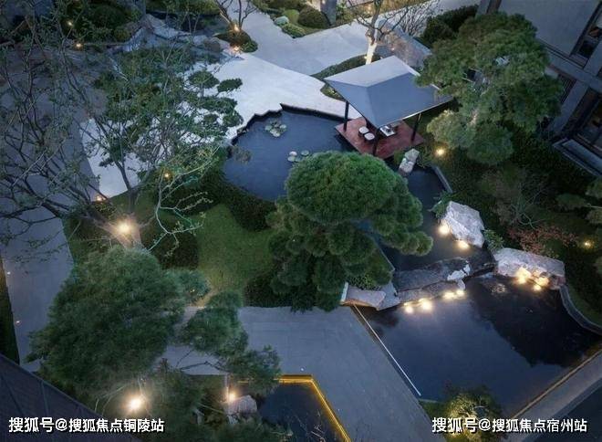 庭院的选材也极具讲究:太行山金景石堆叠成小山丘,岭南古桩铁冬青与中华原生乌桕树移栽而来,蕴含“聚财守业”的美好寓意。细节之处,经得起推敲,让人越看越有味道。