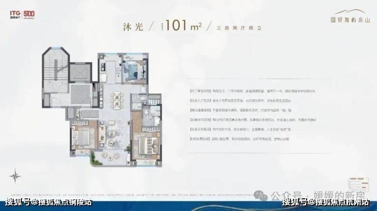在户型规划上更是凭借小高层无连廊+飞机户型的设计优势,将室内的实际使用空间做到了最大.所以,虽然户型的建筑面积是约101㎡的3房,但整个空间的尺度感却能匹配改善型的宽绰3房.