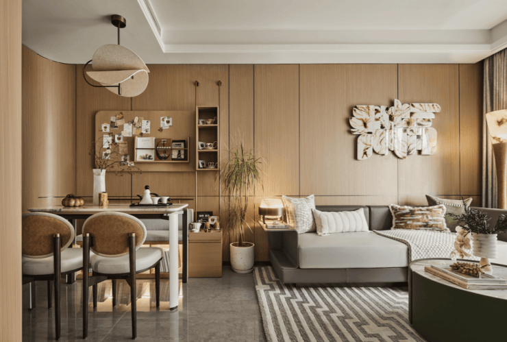 深嘉上府以建面约88-99㎡的精装3房为主,仅有四栋住宅一字排开,享受开阔全景视野与充足采光。在样板房的设计上更以自然雅居理念的落地,选用的艺术纹理瓷砖、实木多层地板、墙布、窗材及钢板等,不仅饱含艺术元素,同时也有很强的耐磨抗蚀特性,具备持久耐用性。