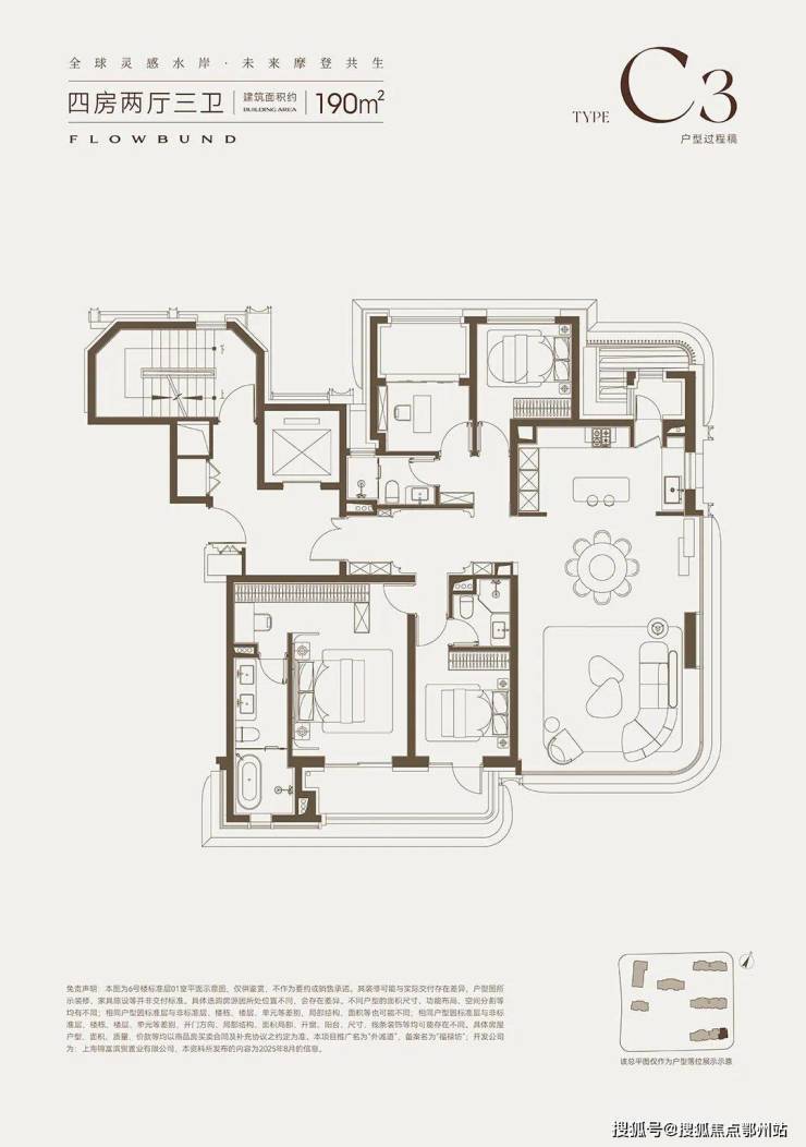 改善家庭的理想之选约190㎡四居,东边套主打270° 全景视野,客餐厅采用弧形玻璃幕墙环绕,东侧可远眺黄浦江景,北侧可俯瞰社区下沉式庭院,景观视野堪称极致;
