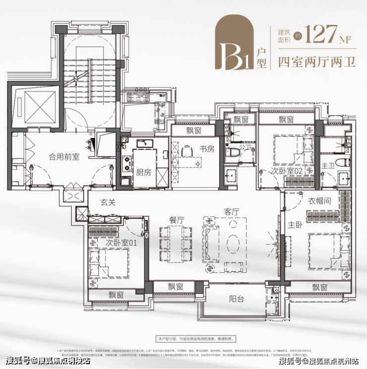 来看看更大一点的户型—— 建面约127㎡超阔四房 ,同样是 南向横厅设计,并拉伸至4开间, 空间舒阔。 主卧套房设计 ,也有足够的收纳,打造专属秀场。