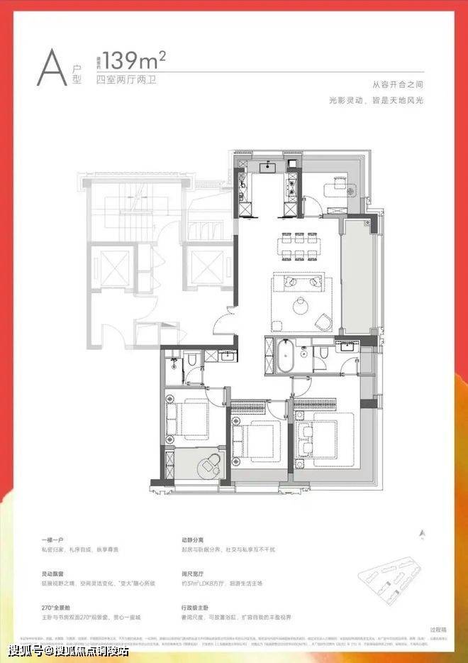 270°转角玻璃、双阳台、N+1灵动空间等设计,突破传统局限,赋予居者更自由丰盛的生活体验。