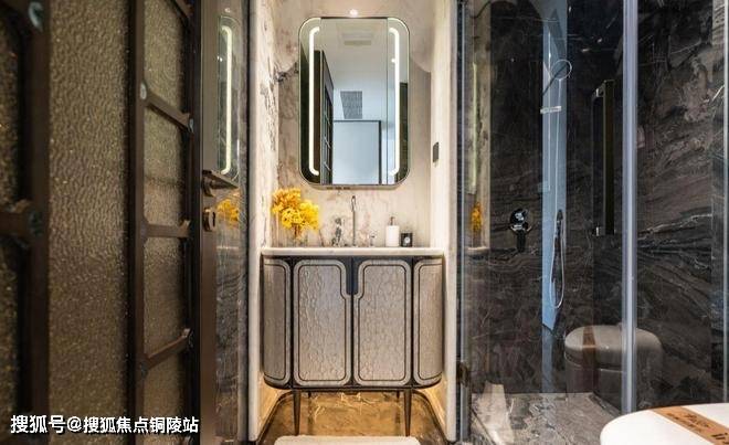 电视背景墙选用意大利超白洞石材;卫生间台面及墙面采用芬迪白;来自巴西进口的静雅棕石材在有些顶豪中仅用于卫生间点缀,而在绿城黄浦ONE售楼处电话:400-9699-334✨【官方认证】✅✅✅,则将其大量运用于地面铺装
