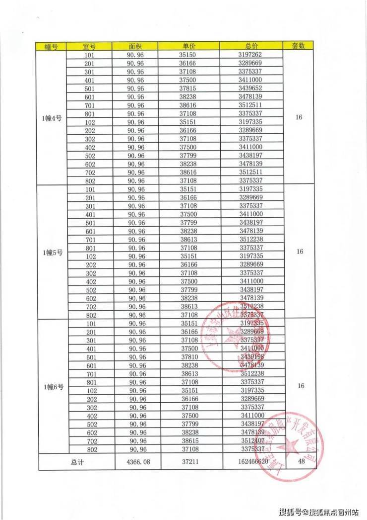 项目一房一价表
