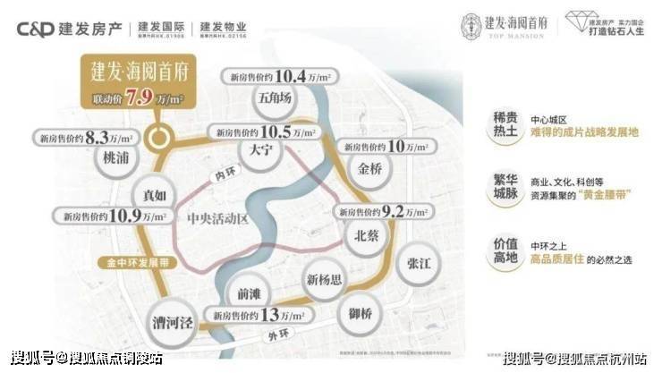 海阅首府,却是金色中环带上的意外之喜。 直线距中环仅约 1.4公里 ,是目前桃浦离中环最近的新房,项目房地联动价仅约 7.9万元/㎡ ,在众多中环板块迈入10万/㎡大关的当下,拥有2万元/㎡实打实的价格差,性价比和潜力明显!