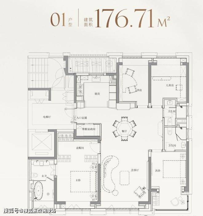 而建面约177㎡01室,则针对性地打造为4房格局,精准契合二胎家庭或三代同堂需求。