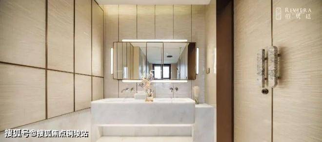 阳光满溢,尤其主卫罕见实现朝南采光,搭配奢华的双台盆、马桶间、浴缸与淋浴的“四件套”配置,尽显高端居住品质;