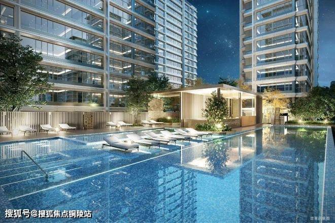 社区规划格局采用中轴对称,内部有室外游泳池、景观廊道和中心大花园,部分楼栋设置架空层,建筑里面以非对称形式的设计手法,打造现代化理念。