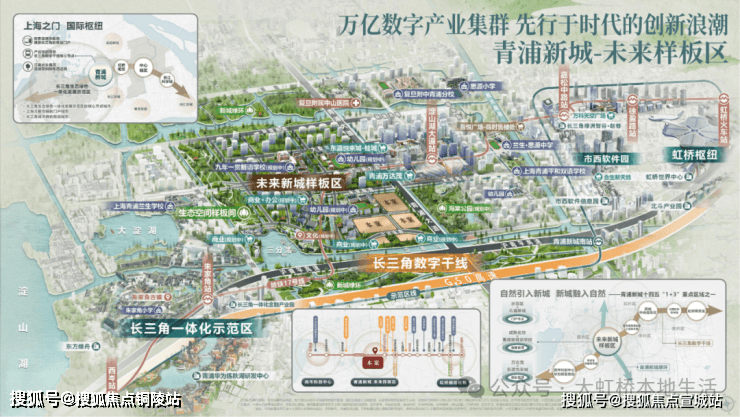 项目直线距离800米的17号线淀山湖大道站,坐落商业建面约43万㎡的青浦万达茂、东渡悦来城两大站前超级商业,再往东还有吾悦广场。