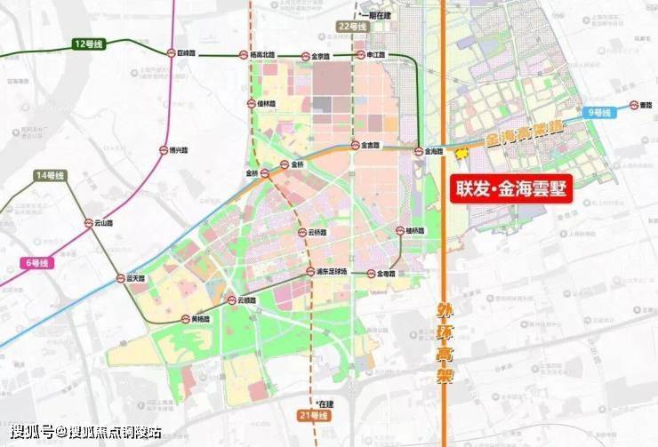 轨交层面,项目位于9/12号线金海路—顾唐路之间,直线距离金海路站约600米;14号线桂桥路站约2公里。