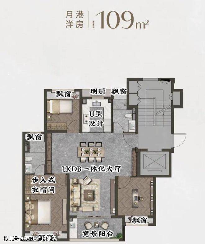 建面约109㎡墅区洋房:一梯两户、三开间朝南的“飞机户型”,做到了5个飘窗+1个阳台的极致拓展,尺度感和舒适度远超同价位竞品。