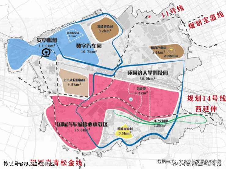 同时,片区的交通也将迎来大跃升:以安亭北站、安亭西站为核心的安亭枢纽,是打通长三角一体化和虹桥国际开放枢纽的链接通道,在上海 2035 规划中,宝嘉线、嘉青松线即将启动,嘉安高速延展嘉定向东,与宝山互通。