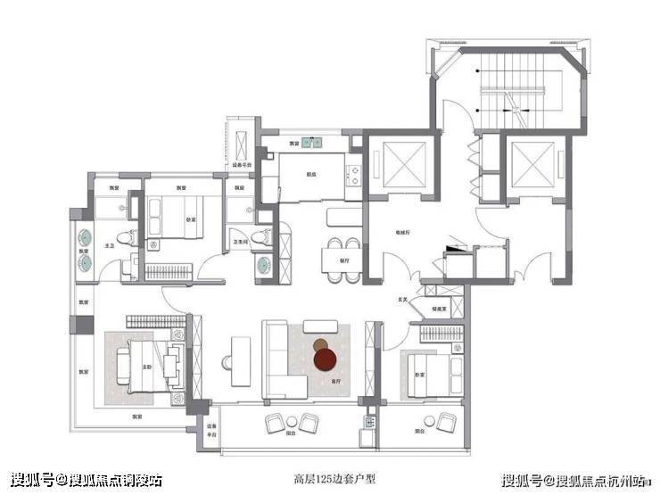 建面约125㎡高层户型