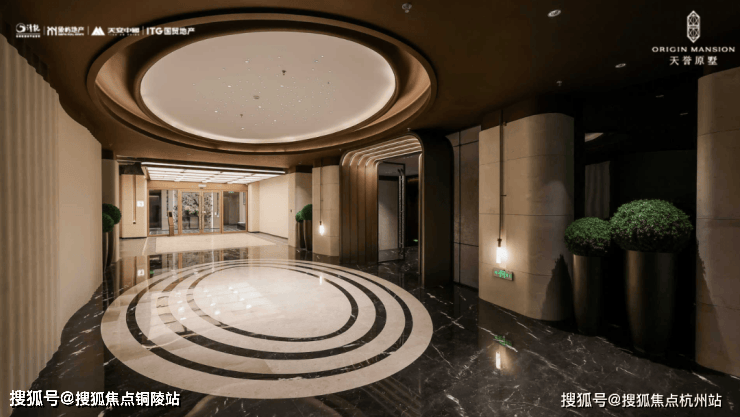 酒店式归家礼序:约54米恢弘门厅,配以约6.5米挑高门廊,两侧臻选金米黄石材与库班绿石材,艺术水景与名贵乔木掩映,归家的仪式感,从第一眼便极致拉升。
