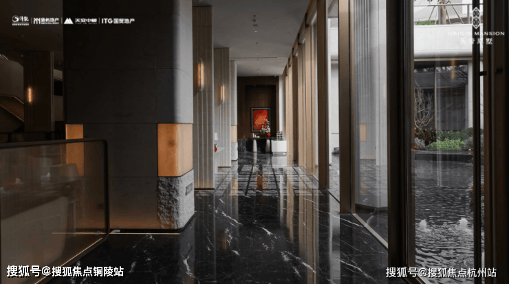 高定下沉庭院:步入大堂,一道近10米高的金属挂帘流水瀑布倾泻而下,与地面静水相连,动静之间,气势与雅趣共生。旋即映入眼帘的,便是精心打造的下沉式会所。