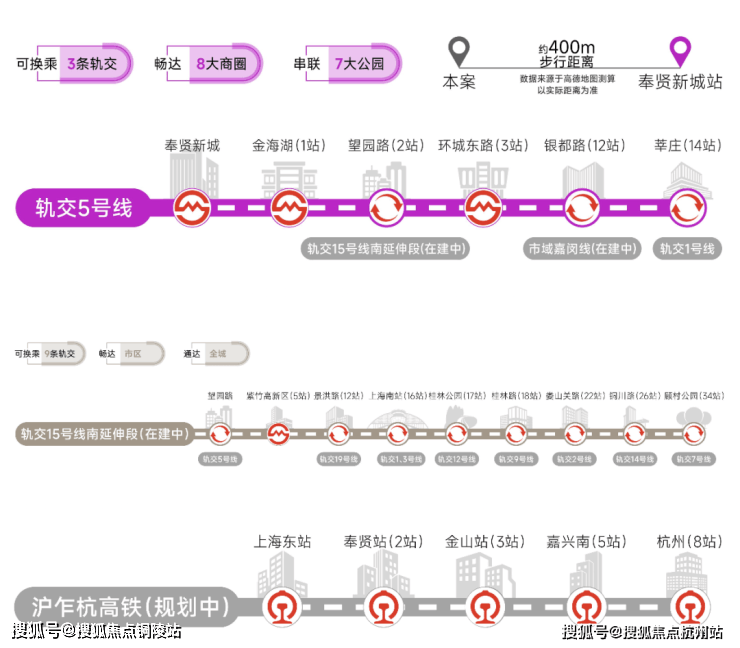 交通方面:项目多轨交环绕,5号线、15号线南延伸段(在建中)、市域嘉闵线南延伸段(规划中)、沪乍杭高铁(规划中)及南枫线(在建中)