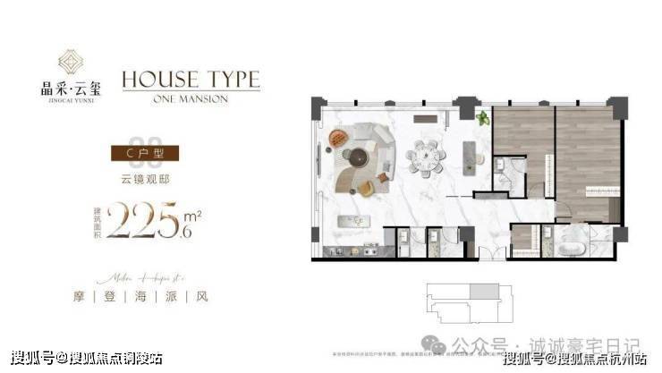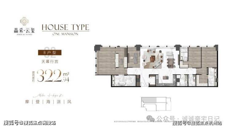 在售户型面积:主力户型为建面约 225㎡四房两厅三卫、280㎡五房两厅四卫、340㎡六房两厅五卫的奢阔大平层。
