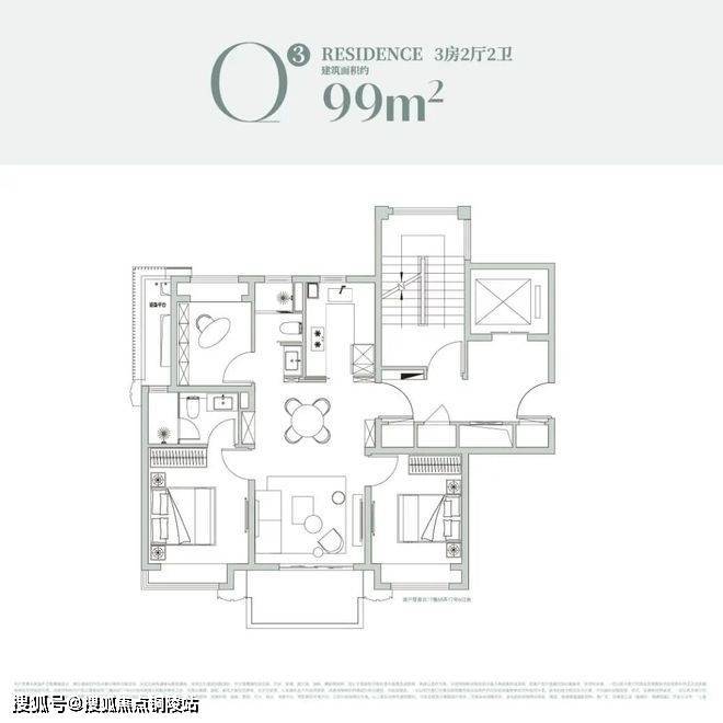 南侧三开间全明布局,实现居住平权,每间卧室都能享有充足采光与舒适尺度;