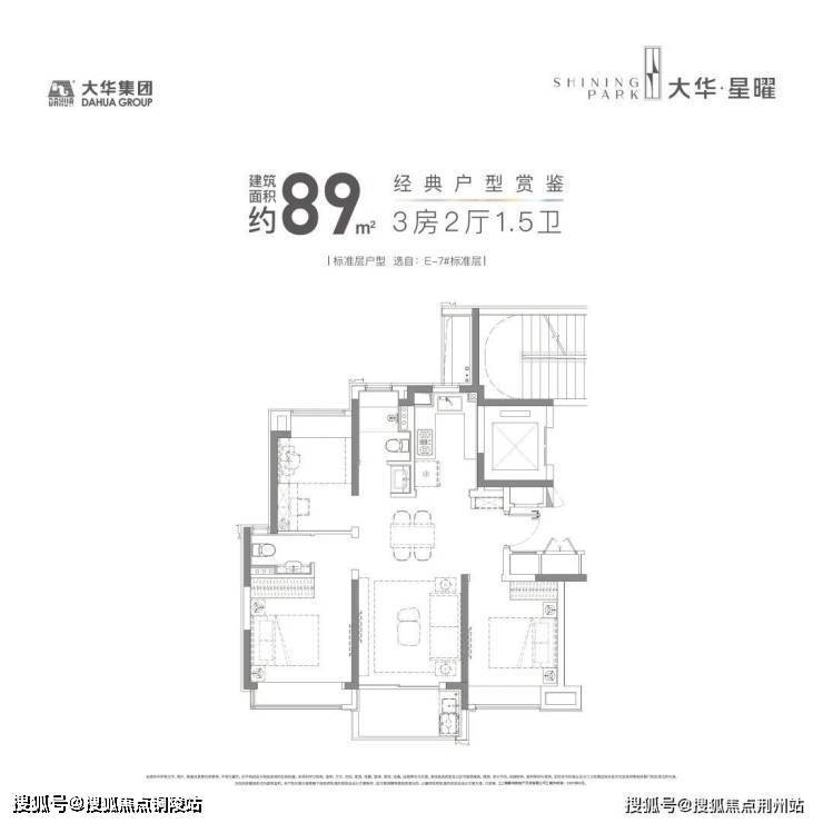建面约89㎡户型,三开间朝南,并且全卧室带飘窗,室内的采光、视野以及空间延展性都非常出色。值得一提的是,室内没有任何的走廊和拐角,在加上一梯两户带来的高得房率。