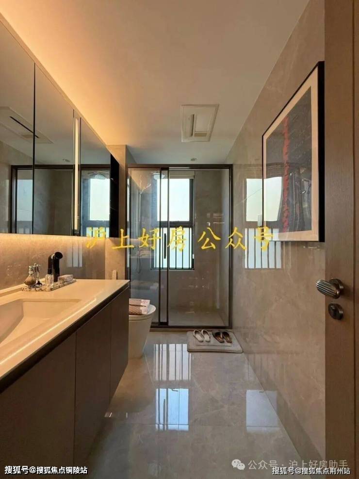 所以虽然是约89㎡的紧凑型3房,但这个户型还是有空间做了一个1.5卫的设计,保证了主人的私密空间,也避免了早高峰用厕的尴尬。样板房实景照片如下: