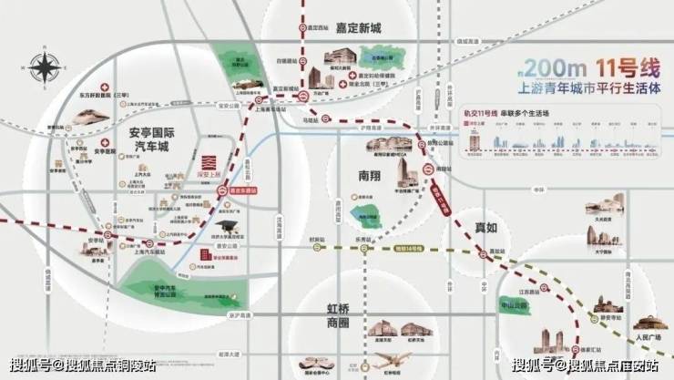 通过11号线,本项目2站即可直达嘉定新城,4站南翔印象城,11站真如副中心、17站徐家汇!