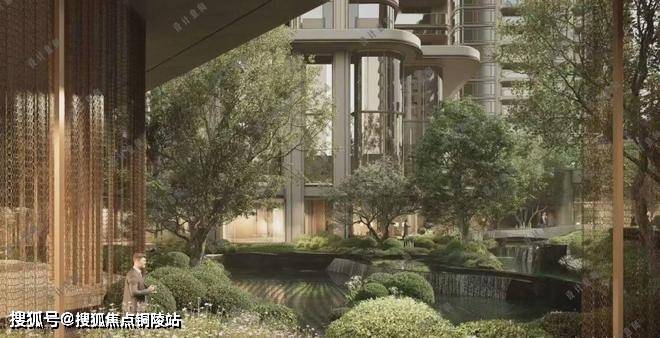 三层归家动线:从地面景观层到架空层,再到入户层,穿越绿植、光影与水景,步步进入私域。
