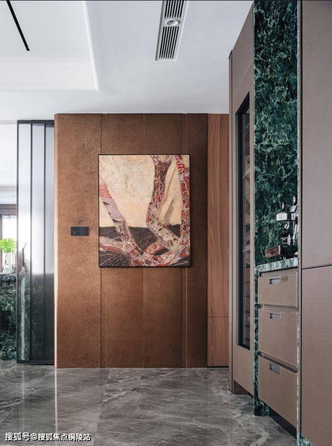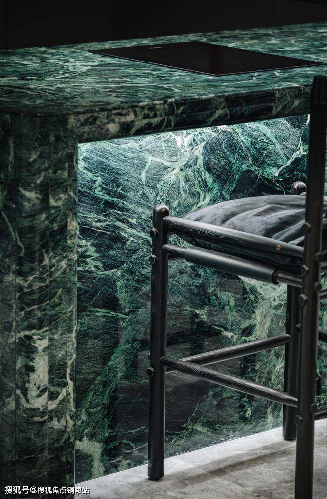 石库门外立面的拱形线条,被复刻到了屏风上;大量红洞石张扬着红色,是致敬风貌石库门屋顶的浪漫色调。