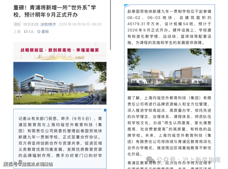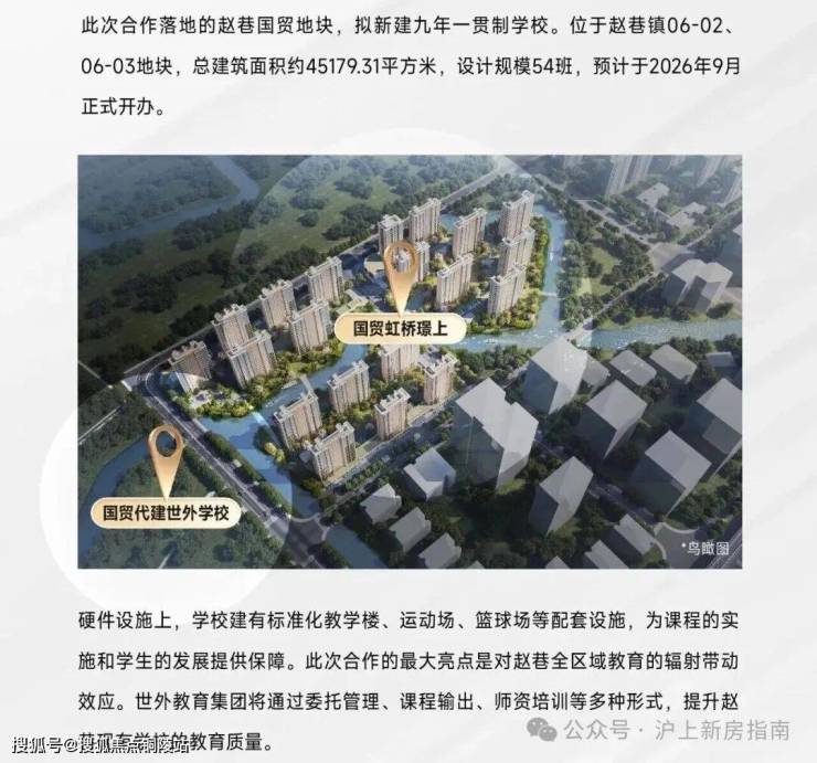 9月5日“世外”正式官宣落定赵巷,这所世外托管的公办九年制学校为国贸代建学校,与项目仅一路之隔,未来大概率对口。(期房不承诺学区,学区划分以教育局公布为准)。