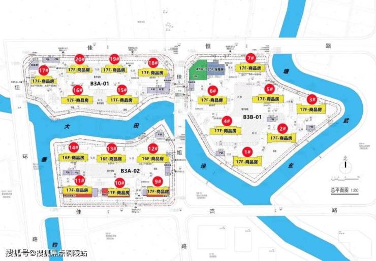 共20幢楼、16-17层的高层、标准层高约3米、架空层(约3.5米-4米)